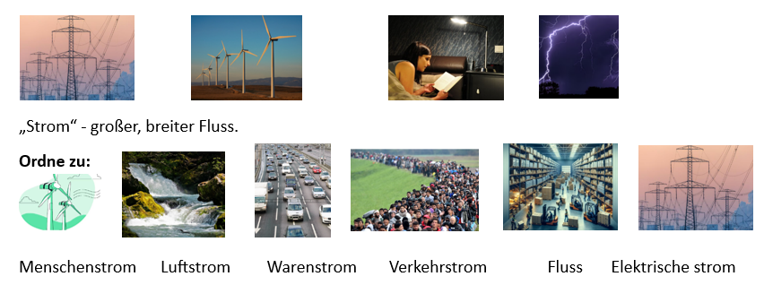(Die Schüller sind Elektronen, laufen chaotisch im Raum. Nach dem Klatsch „Elektrische Strom… angeschaltet“ laufen sie gerichtet. „Ausgeschaltet“ – chaotische Bewegung.