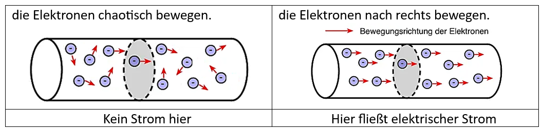 2.Die gerichtete Bewegung von elektrischer Ladung. (In eine gerichtete Bewegung werden Elektronen von Spannungsquelle versetzt).